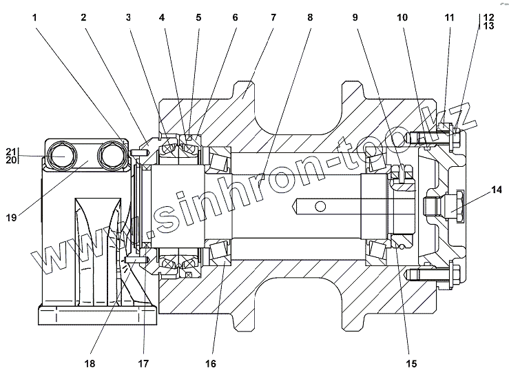 Каталог запасных частей к технике: Промтрактор Т-20.01Я (2005). 2001-21-15СП Каток поддерживающий