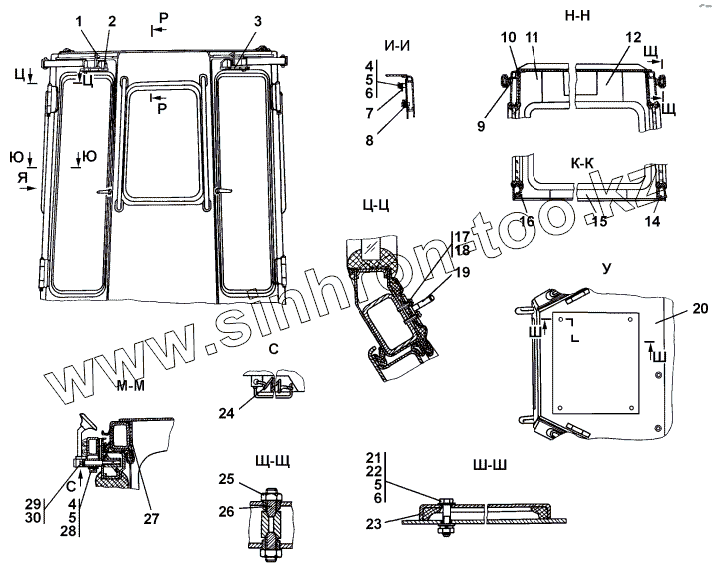 Каталог запасных частей к технике: Промтрактор Т-20.01Я (2005). 2501-59-1СП Кабина