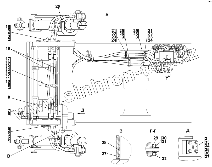 Каталог запасных частей к технике: Промтрактор Т-20.02Я (Четра). Установка гидроцилиндров