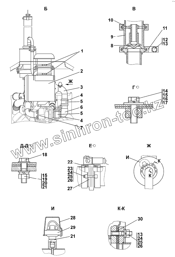 Каталог запасных частей к технике: Промтрактор Т-20.02Я (Четра). Установка систем воздухоочистки и выпуска