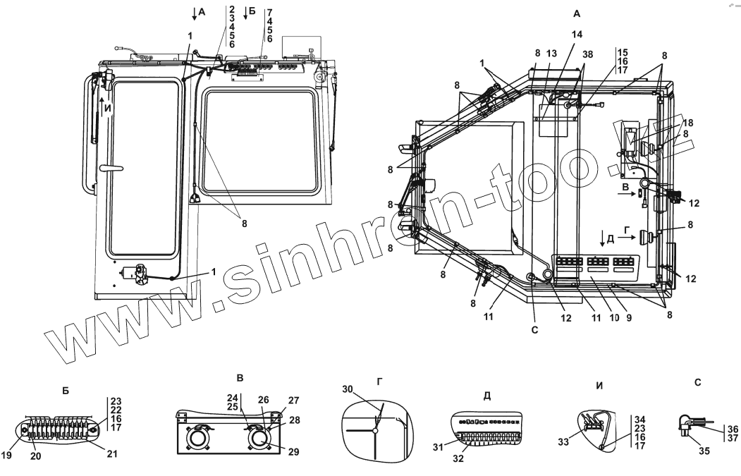Каталог запасных частей к технике: Промтрактор Т-25.01К1. Электрооборудование крыши кабины