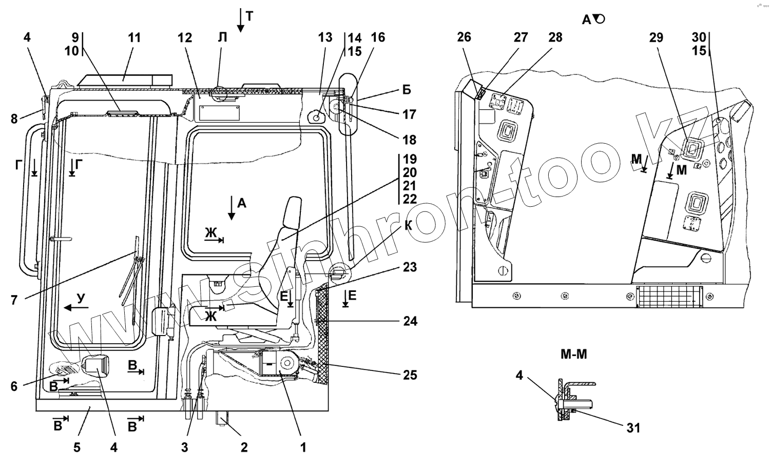 Каталог запасных частей к технике: Промтрактор Т-25.01К1. Кабина
