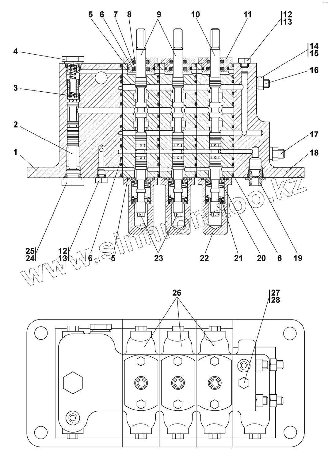 Каталог запасных частей к технике: Промтрактор Т-25.01К1. Распределитель секционный