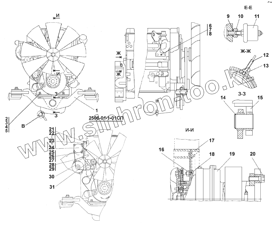 Каталог запасных частей к технике: Промтрактор Т-25.01К1. Установка двигателя QSX1-С440 «Cummins»