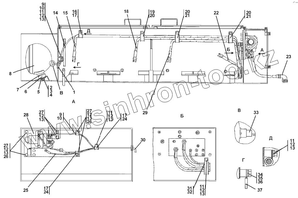 Каталог запасных частей к технике: Промтрактор Т-25.01К1. Установка электрооборудования в контейнере АКБ