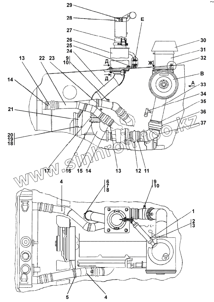 Каталог запасных частей к технике: Промтрактор Т-25.01К1. Установка систем воздухоочистки и выпуска
