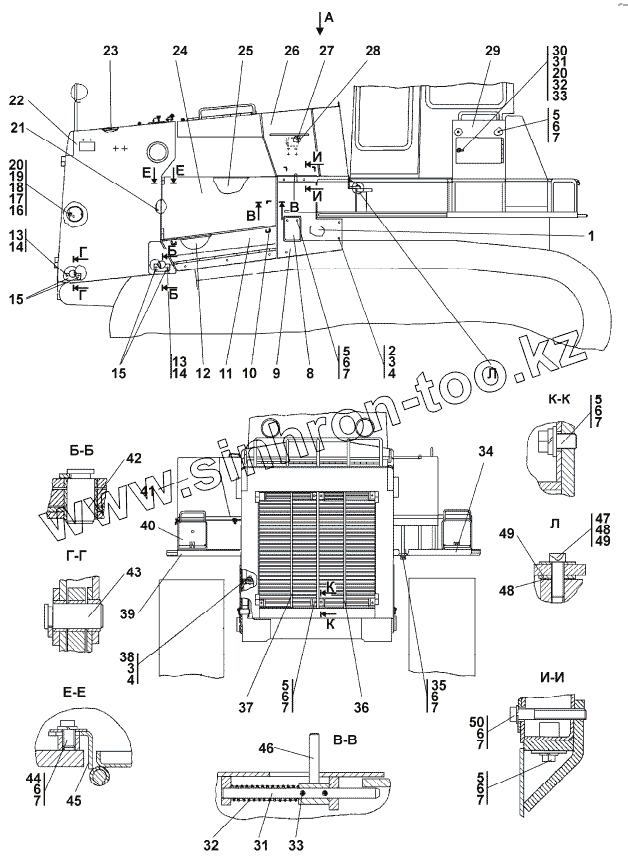 Каталог запасных частей к технике: Промтрактор Т-35.01К. 3501-55-2-02СП Облицовка