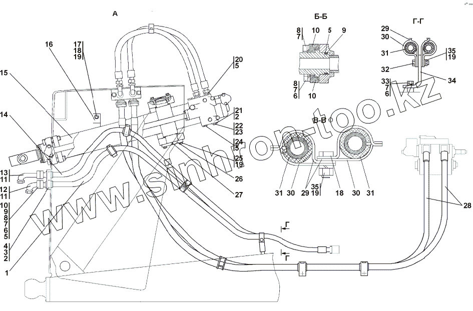Каталог запасных частей к технике: Промтрактор Т-35.01К. 3506-26-10СП/-01СП Установка гидроцилиндров