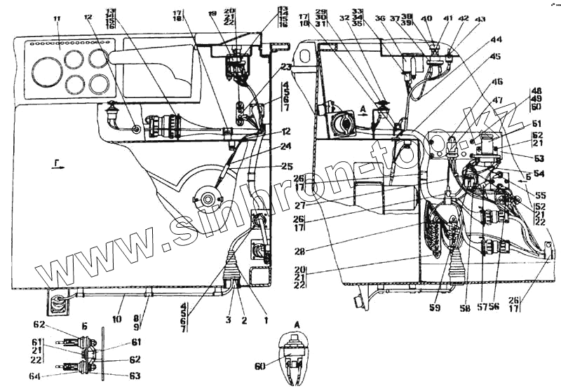 Каталог запасных частей к технике: Промтрактор Т-35.01Я. Электрооборудование пола кабины