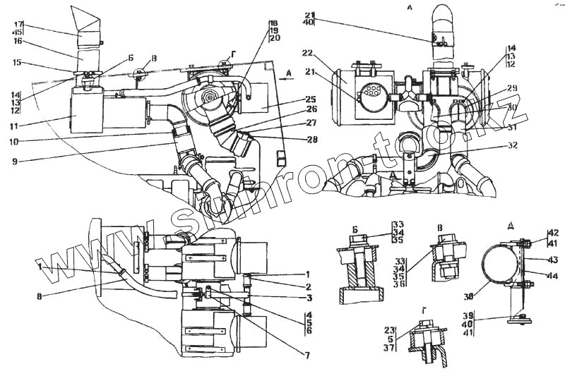 Каталог запасных частей к технике: Промтрактор Т-35.01Я. Установка систем воздухоочистки и выпуска