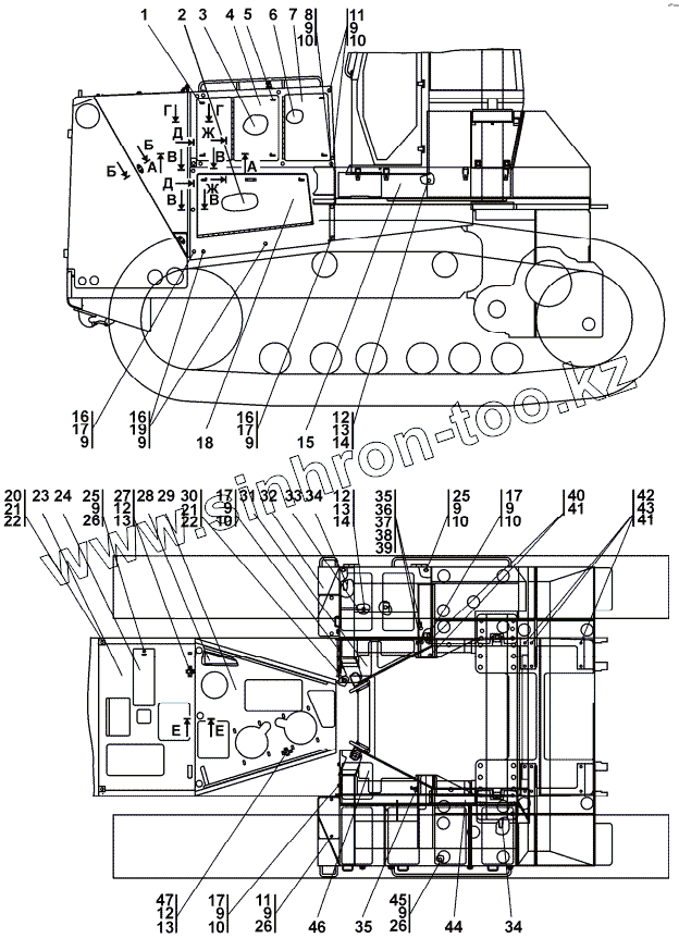 Каталог запасных частей к технике: Промтрактор Т-40.01К. 4002-55-1-01СП Облицовка