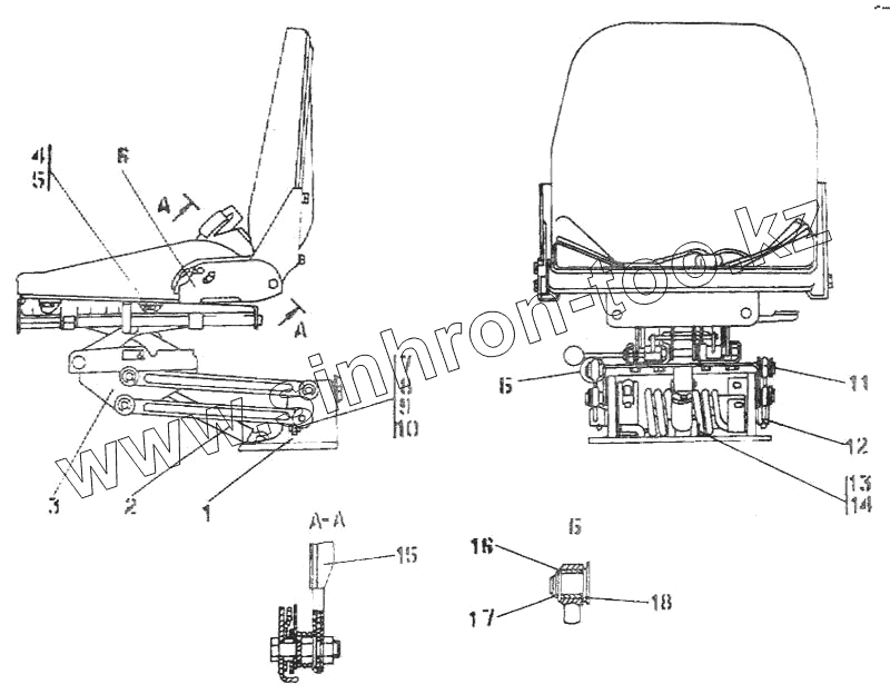 Каталог запасных частей к технике: Промтрактор Т-500. Сиденье