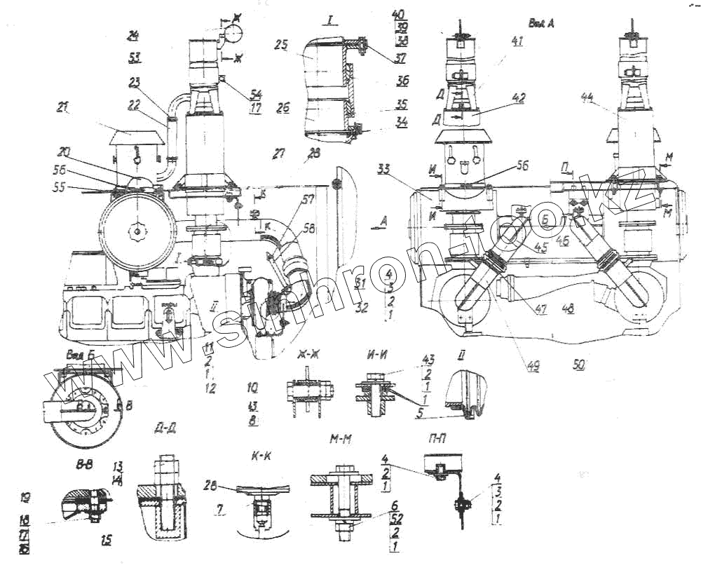 Каталог запасных частей к технике: Промтрактор Т-500. Установка систем воздухоочистки и выпуска