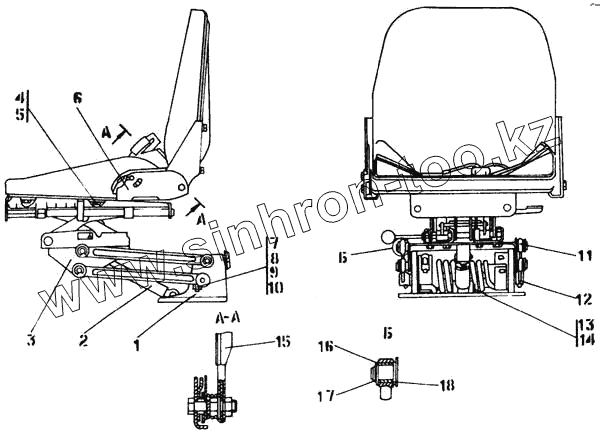 Каталог запасных частей к технике: Промтрактор Т-50.01. Сиденье