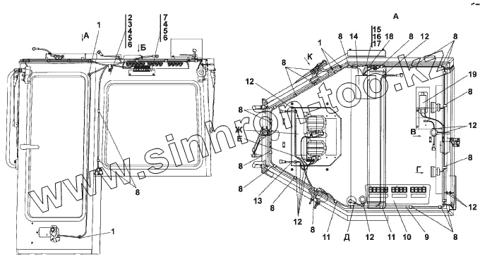Каталог запасных частей к технике: Промтрактор Т-9.01Я. Электрооборудование крыши кабины