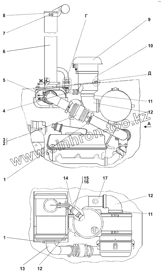 Каталог запасных частей к технике: Промтрактор Т-9.01Я. Установка систем воздухоочистки и выпуска