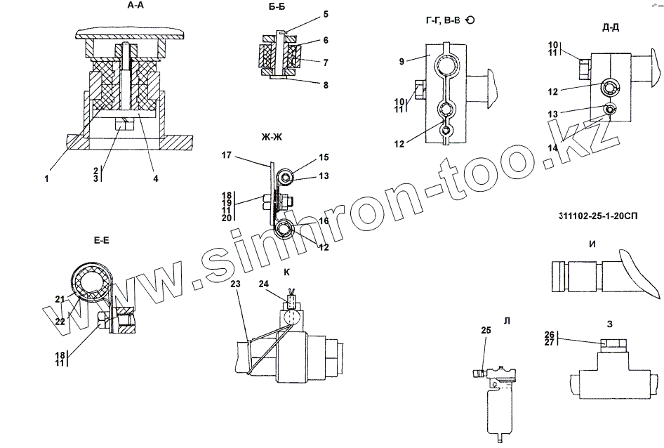 Каталог запасных частей к технике: Промтрактор ТГ-121Я. 311102-25-1СП Установка бака