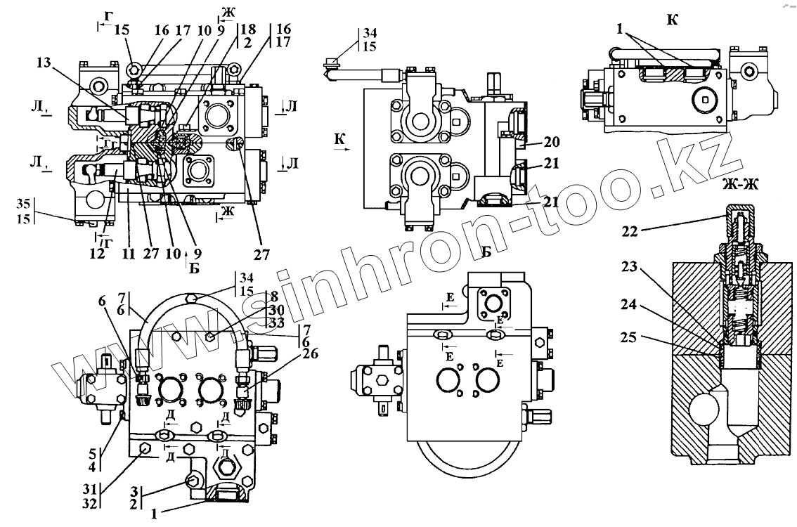 Каталог запасных частей к технике: Промтрактор ТГ-221КМ. Распределитель гидромоторов