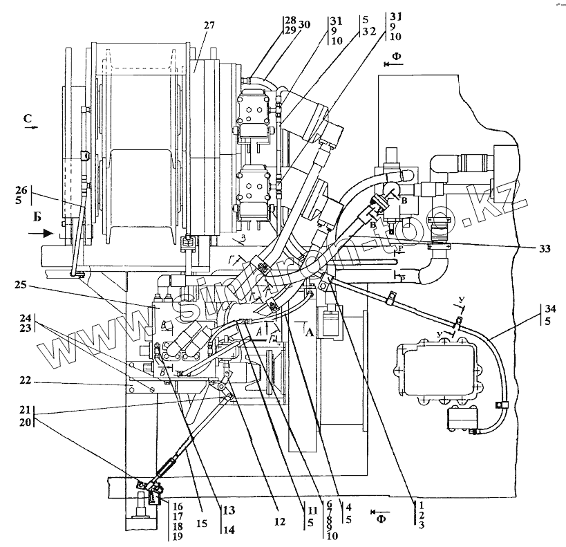 Каталог запасных частей к технике: Промтрактор ТГ-221КМ. Установка привода лебедки с системой гидроуправления