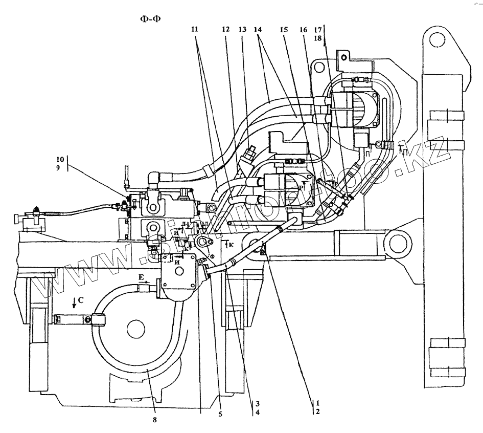 Каталог запасных частей к технике: Промтрактор ТГ-221КМ. Установка привода лебедки с системой гидроуправления