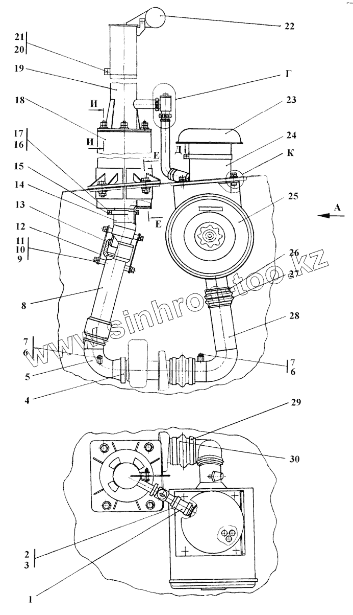 Каталог запасных частей к технике: Промтрактор ТГ-221КМ. Установка систем воздухоочистки и выпуска