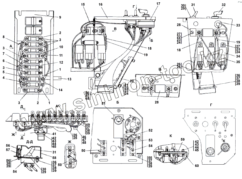 Каталог запасных частей к технике: Промтрактор ТГ-221Я. 311502-10-100СП Блок выключателей