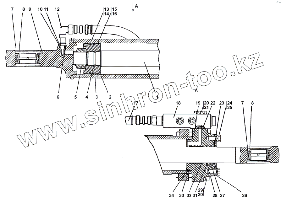 Каталог запасных частей к технике: Промтрактор ТГ-221Я. 312001-26-50-02СП Гидроцилиндр