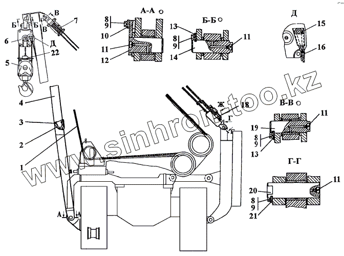 Каталог запасных частей к технике: Промтрактор ТГ-221Я. 312001-92-1СП Установка стрелы и полиспастов