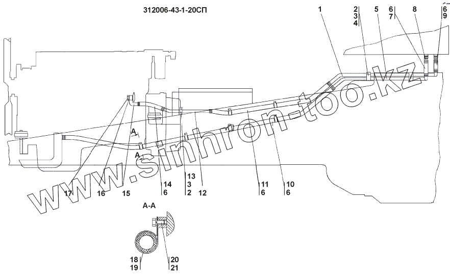 Каталог запасных частей к технике: Промтрактор ТГ-301К. 312006-43-1СП Установка системы подогрева