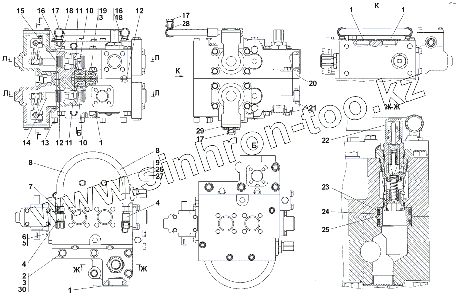 Каталог запасных частей к технике: Промтрактор ТГ-301К. 312501-91-10-01СП Распределитель гидромоторов