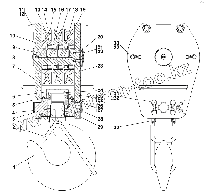 Каталог запасных частей к технике: Промтрактор ТГ-302Я. Подвеска крюка