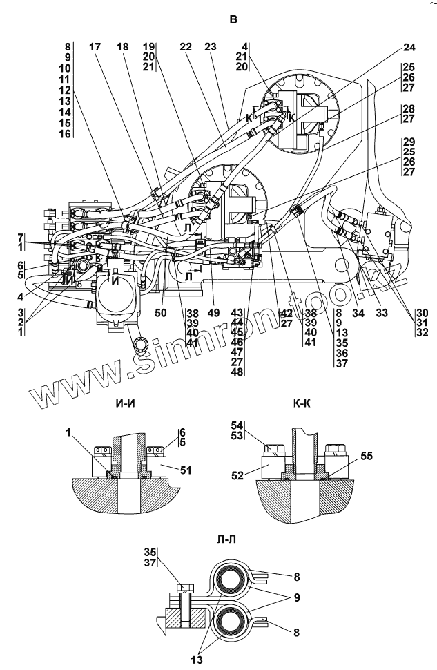 Каталог запасных частей к технике: Промтрактор ТГ-302Я. Установка гидросистемы