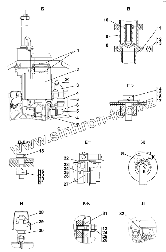 Каталог запасных частей к технике: Промтрактор ТГ-302Я. Установка систем воздухоочистки и выпуска