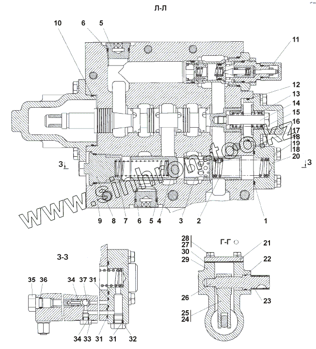 Каталог запасных частей к технике: Промтрактор ТГ-503К. 312501-91-10-01СП Распределитель гидромоторов