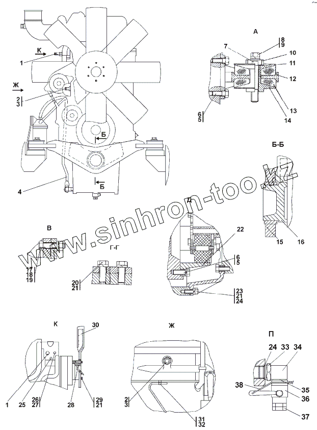 Каталог запасных частей к технике: Промтрактор ТГ-503К. 313506-01-1СП Установка двигателя КТТА19-С520