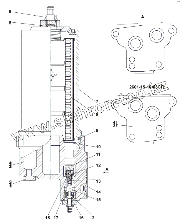 Каталог запасных частей к технике: Промтрактор ТГ-503Я. 2601-15-10-02СП/-03СП Фильтр