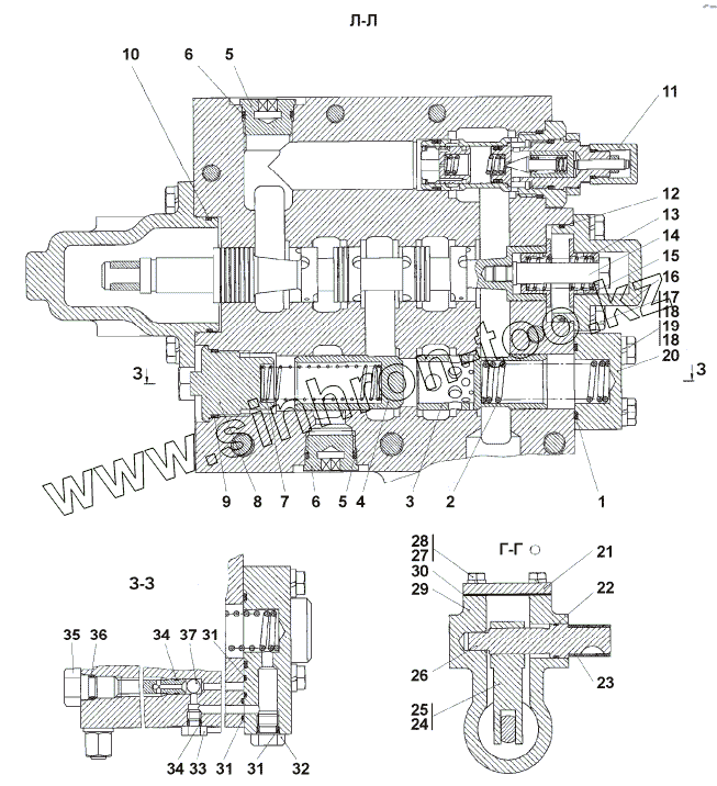 Каталог запасных частей к технике: Промтрактор ТГ-503Я. 312501-91-10-01СП Распределитель гидромоторов