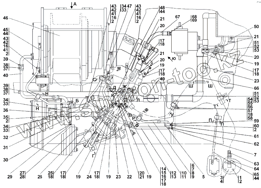 Каталог запасных частей к технике: Промтрактор ТГ-503Я. 313502-94-1СП Установка лебедок с гидроуправлением
