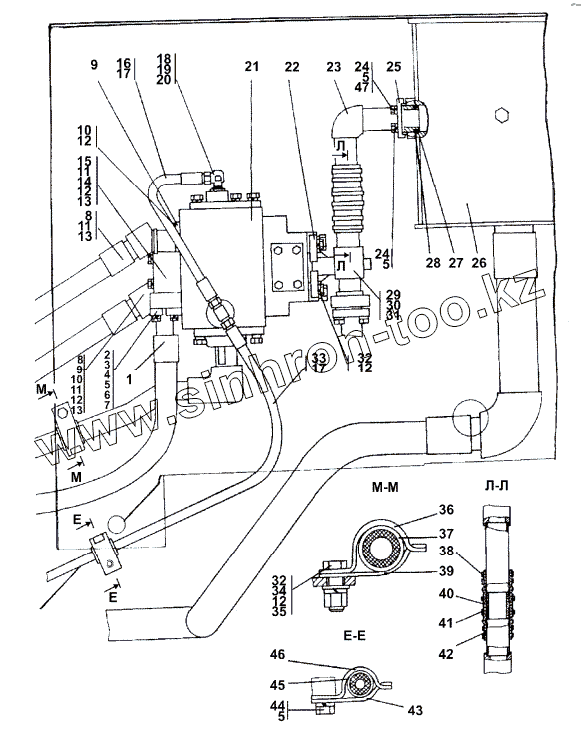 Каталог запасных частей к технике: Промтрактор ТГ-503Я. Установка гидросистемы