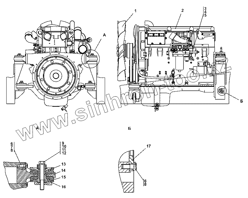 Каталог запасных частей к технике: Промтрактор ТГ-511. 313516-01-1СП Установка двигателя QSX15-C500