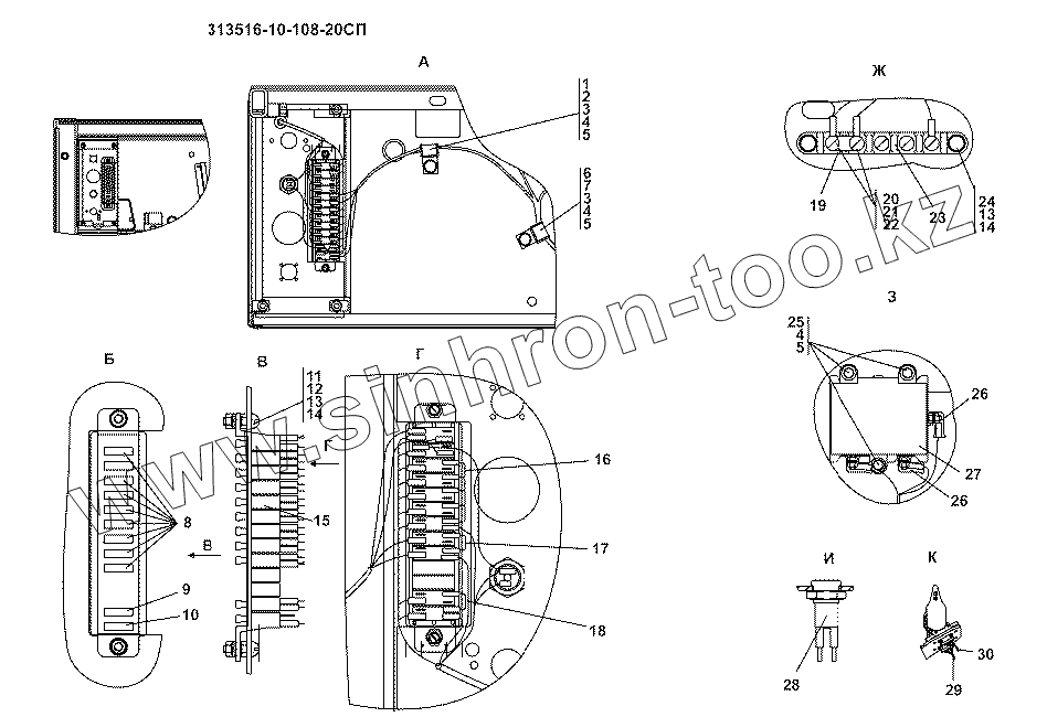 Каталог запасных частей к технике: Промтрактор ТГ-511. 313516-10-108СП Блок выключателей