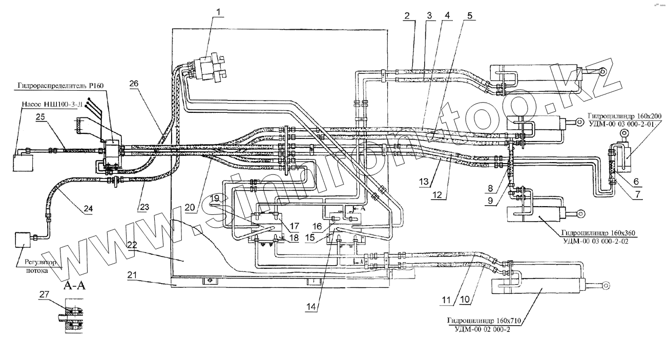 Каталог запасных частей к технике: ПТЗ К-702МБА. Гидросистема бульдозерного оборудования