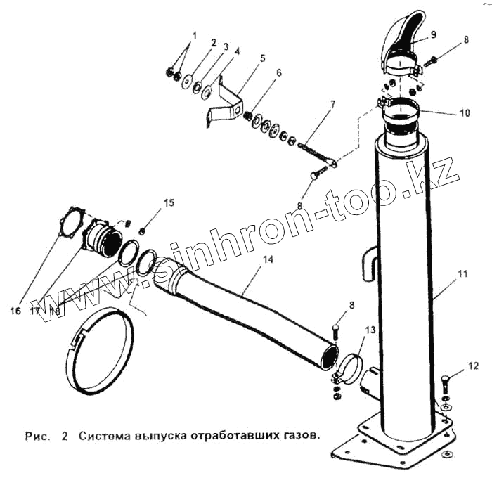 Каталог запасных частей к технике: ПТЗ К-702МВ. Система выпуска отработанных газов
