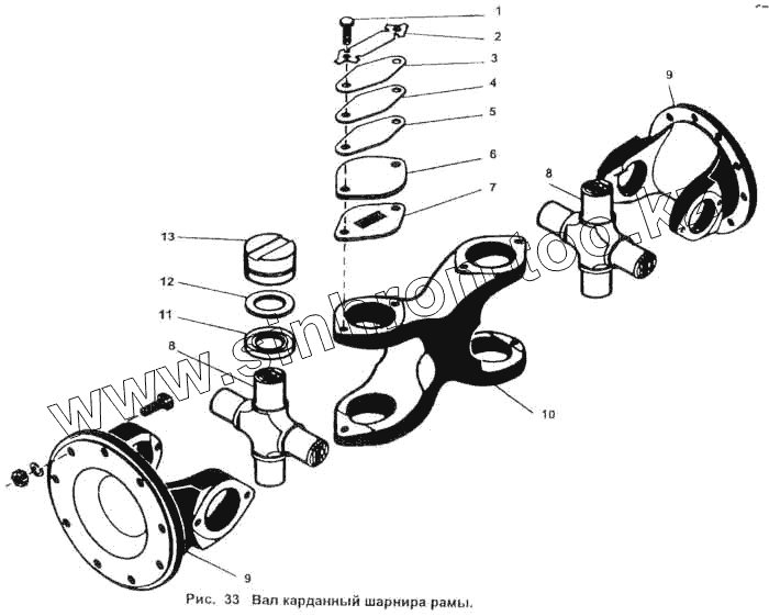 Каталог запасных частей к технике: ПТЗ К-702МВ. Вал карданный шарнира рамы