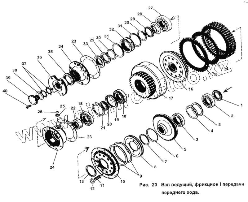 Каталог запасных частей к технике: ПТЗ К-702МВ. Вал ведущий, фрикцион 1-й передачи переднего хода