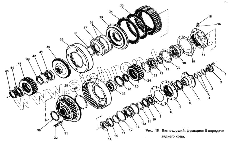 Каталог запасных частей к технике: ПТЗ К-702МВ. Вал ведущий, фрикцион 2-й передачи заднего хода