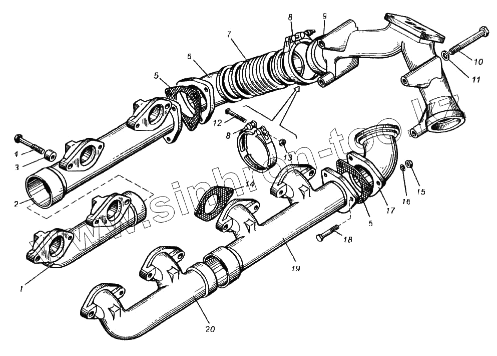Каталог запасных частей к технике: ПТЗ К-702МВА. Газопровод двигателя ЯМЗ-8423.10