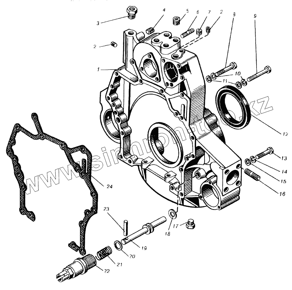 Каталог запасных частей к технике: ПТЗ К-702МВА. Картер маховика двигателя ЯМЗ-8423.10