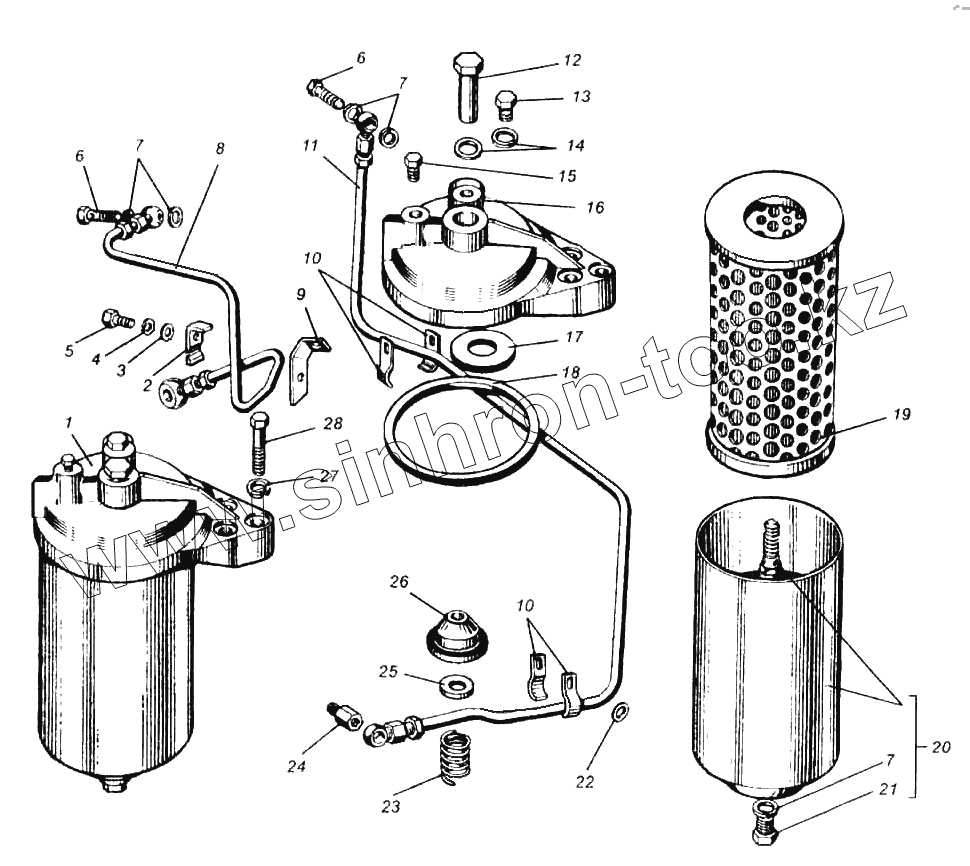Каталог запасных частей к технике: ПТЗ К-702МВА. Масляный фильтр турбокомпрессора двигателя-238НДъ