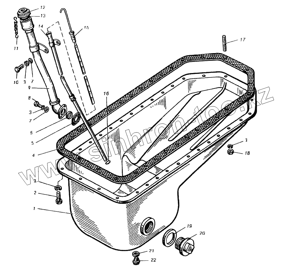 Каталог запасных частей к технике: ПТЗ К-702МВА. Поддон блока цилиндров двигателя ЯМЗ-8423.10
